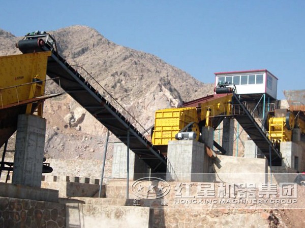 【組成部件】:石料破碎工藝流程由振動(dòng)給料機(jī)、顎式破碎機(jī)、反擊式破碎機(jī)、振動(dòng)篩、膠帶輸送機(jī)、集中電控等設(shè)備組成。